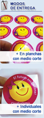 - Modo de entrega: En planchas con medio corte para facilitar el pegado de la etiqueta, solo despegas de la plancha y pegas en donde quieras. En caso de necesitar las etiquetas de forma individual, (esto es útil en caso de que se necesite para repartir), tendrá un costo adicional.